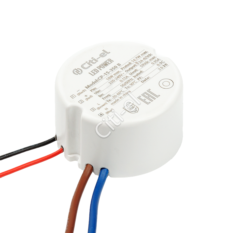 Нерегулируемый источник тока в круглом корпусе для светодиодных светильников. Гальванически развязан, Class II. Пульсации света ≤ 1%. Степень защиты оболочки от пыли и влаги – IP44. Гарантия 5 лет.