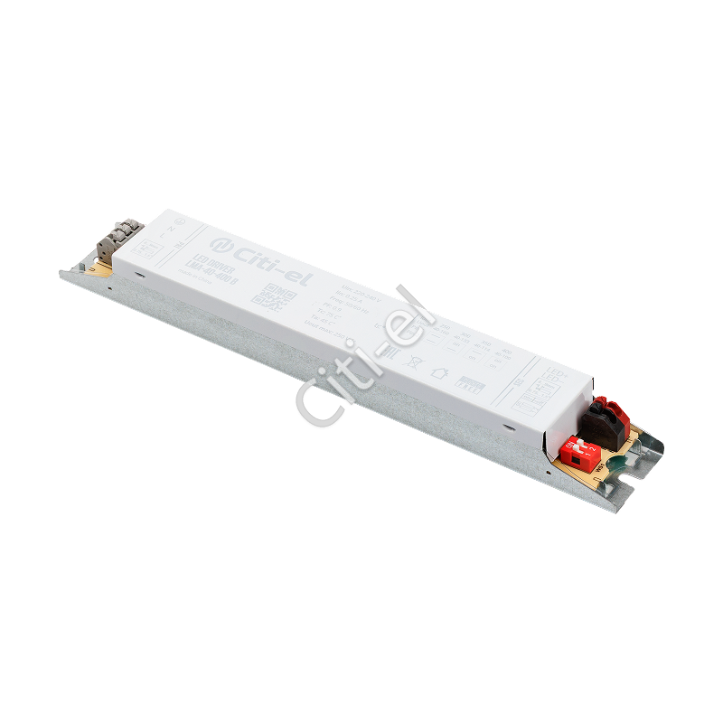 Регулируемый источник тока для светодиодных светильников. Гальванически развязан, Class I. Пульсации света ≤ 1%. Степень защиты оболочки от пыли и влаги – IP20. Гарантия 5 лет.