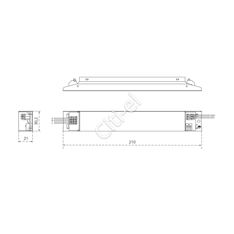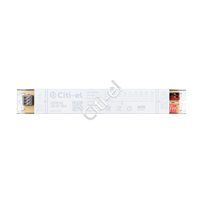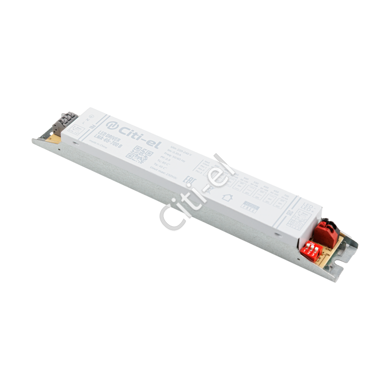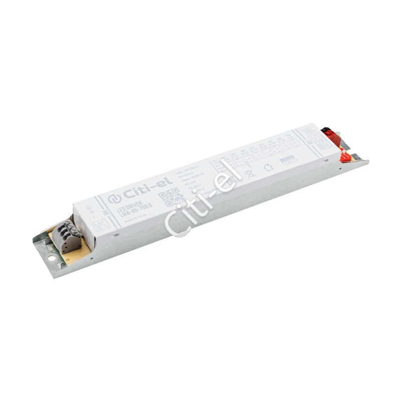 Регулируемый источник тока для светодиодных светильников. Гальванически развязан, Class I. Пульсации света ≤ 1%. Степень защиты оболочки от пыли и влаги – IP20. Гарантия 5 лет.