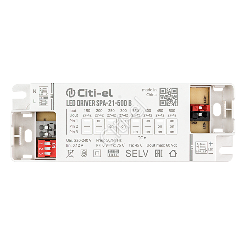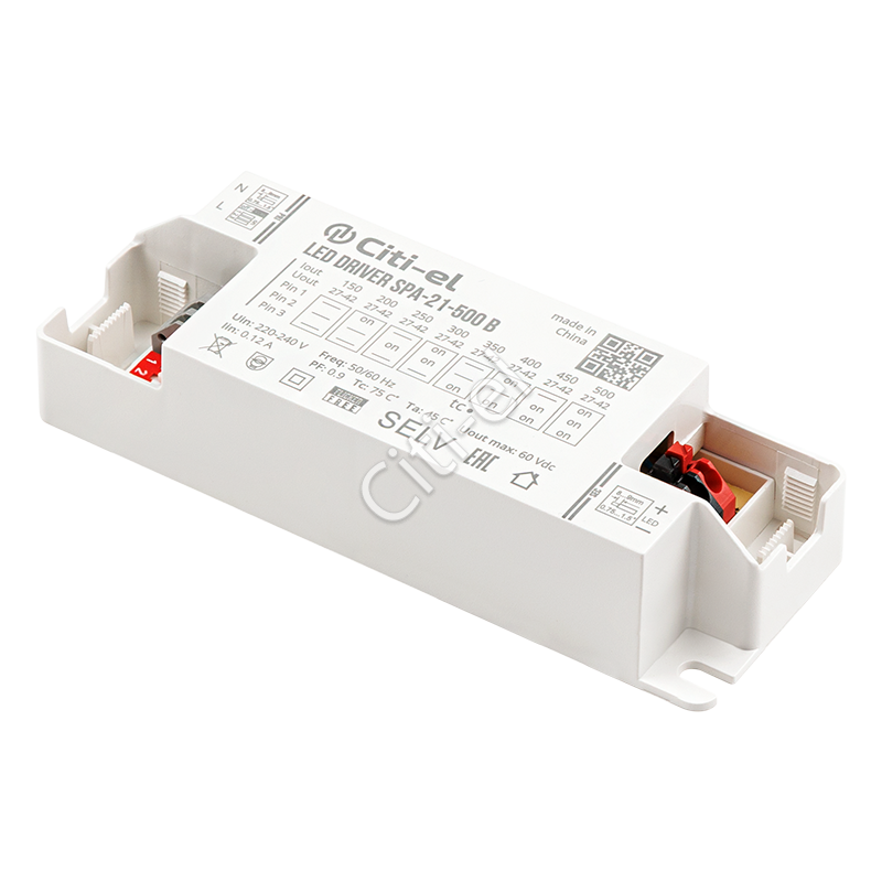 Регулируемый источник тока для светодиодных светильников. Гальванически развязан, Class II. Пульсации света ≤ 1%. Степень защиты оболочки от пыли и влаги – IP20. Гарантия 5 лет.