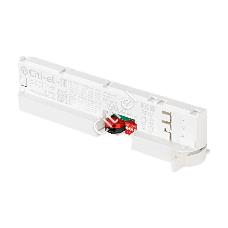 Регулируемый источник тока для светодиодных светильников. Гальванически развязан, Class II. Пульсации света ≤ 1%. Степень защиты оболочки от пыли и влаги – IP20. Гарантия 5 лет.