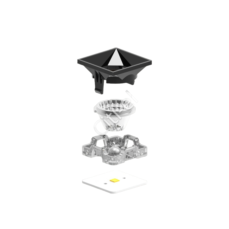 Линза для светильника из поликарбоната. Идет в комплекте с крышкой и креплением для светодиодной платы. Имеет разные варианты углов рассеивания для удовлетворения любых требований к световому эффекту: 12° / 24° / 38° / 50° / 50°*50° / 70°*70° / 35°*70° / 90°*90°. Антибликовое покрытие может быть матовым и глянцем. Цвет черный/белый. К заказу доступны модификации линзы состоящие из 1 / 3 / 4 / 5 / 9 частей.