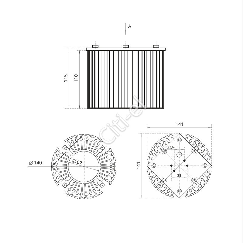 Алюминиевый радиатор цилиндрической формы для отвода тепла.