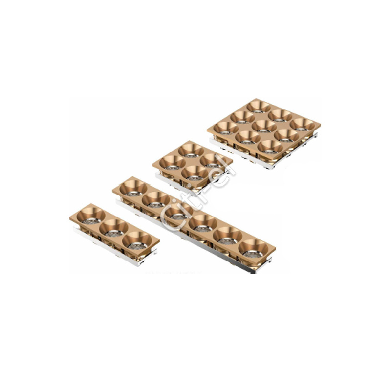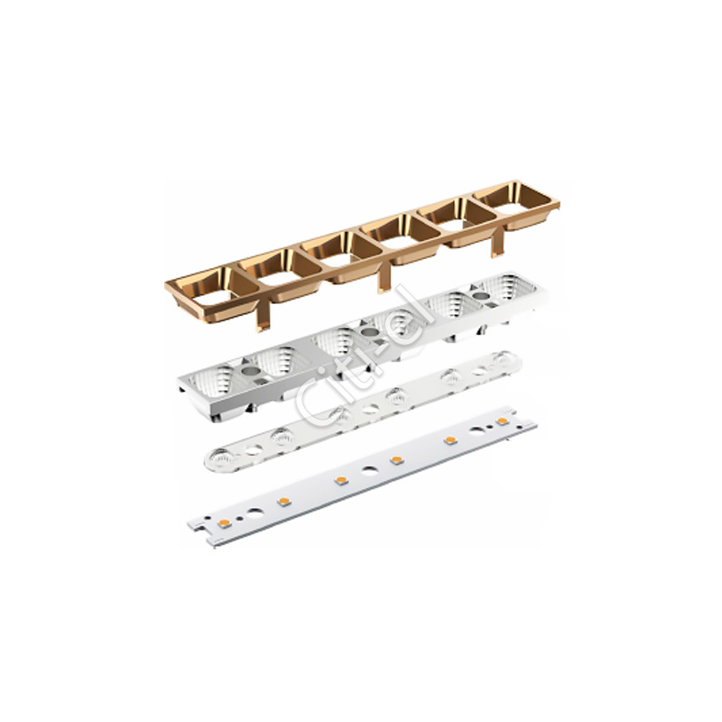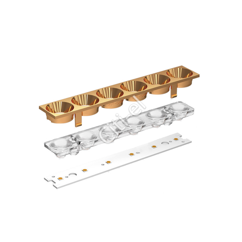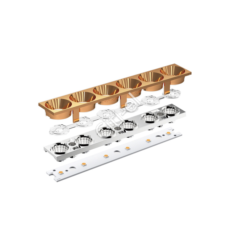 Пластиковый рефлектор для светильника. Идет в комплекте с крышкой и креплением для светодиодной платы. Имеет разные варианты углов рассеивания для удовлетворения любых требований к световому эффекту: 24° / 50° / 50°*50°. Показатель UGR < 9. Антибликовое покрытие может быть матовым и глянцем. Цвет черный / белый / серебряный / золотой / медный / розовое золото. К заказу доступны модификации рефлектора состоящие из 1 / 3 / 4 / 6 / 9 частей. Форма рефлектора может быть круглой и квадратной.