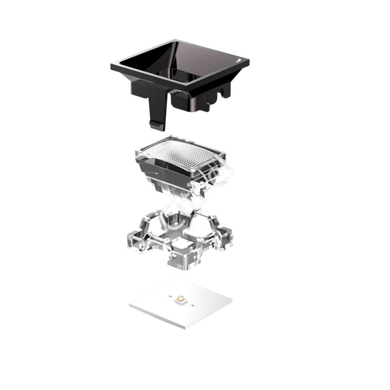 Пластиковый рефлектор для светильника. Идет в комплекте с крышкой и креплением для светодиодной платы. Имеет разные варианты углов рассеивания для удовлетворения любых требований к световому эффекту: 12° / 24° / 38° / 50° / 50°*50° / 70°*70° / 35°*70° / 90°*90°. Антибликовое покрытие может быть матовым и глянцем. Цвет черный/белый. К заказу доступны модификации рефлектора состоящие из 1 / 3 / 4 / 5 / 9 частей.